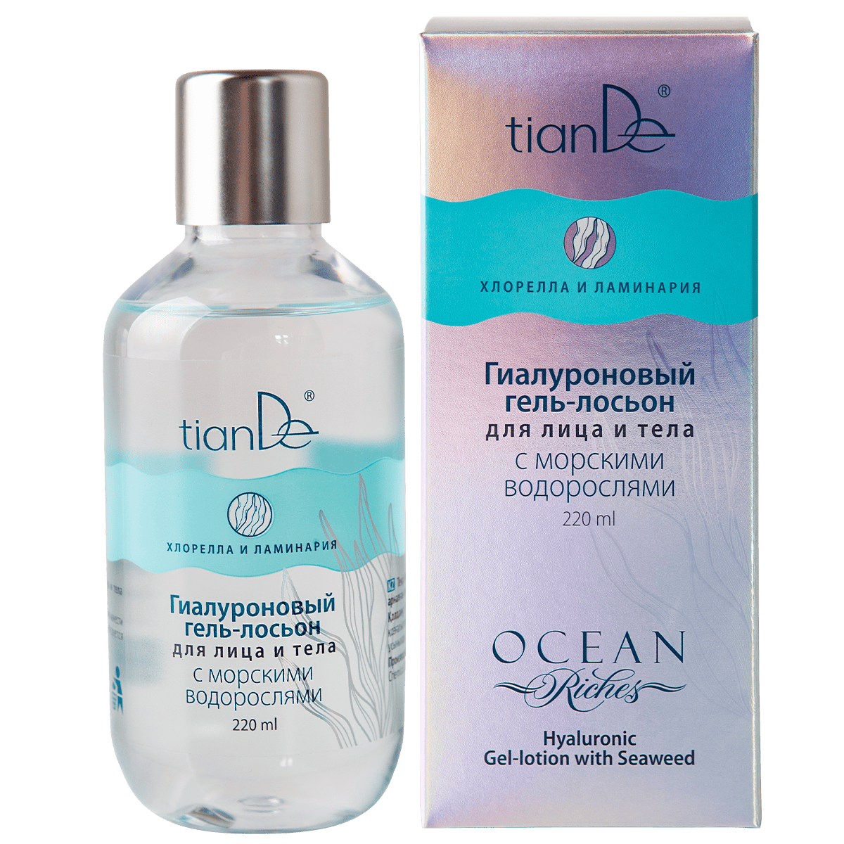 Feel the power of the ocean on your skin and immerse yourself in a wave of beauty and freshness with the Ocean Riches range. Hyaluronic Face & Body Gel-lotion with Seaweed provides deep hydration to the skin, restores it, and returns its tone, elasticity, and healthy appearance. Green microalgae chlorella, brown kelp, collagen, the natural source of cellular energy ribose, the natural moisturizer trehalose and hyaluronic acid, working together, provide the skin with multidimensional hydration and ideal care. Hyaluronic gel lotion is a high-quality treatment for both face and body. It has a melt-in texture and absorbs instantly, leaving only a feeling of comfort.